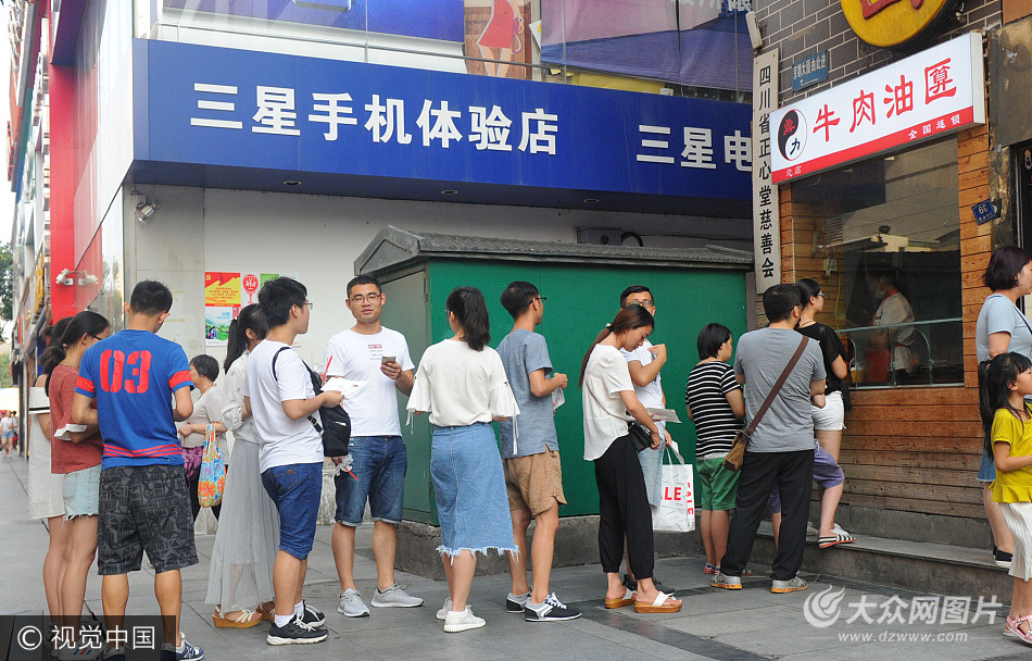 2017年7月11日,成都春熙路一家餅店門口,站滿了排隊購物的市民,記者調查發現,其中出現疑似專業排隊托。