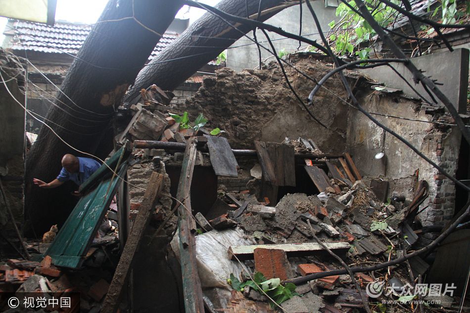 18日晚上9點多,濟南驟降大雨,狂風不止,后宰門街56號院里的兩棵半米粗的梧桐樹正搖搖欲墜,被風連根拔起,重重壓在一間民房上,后者不堪其重發生坍塌。萬幸的是沒有造成人員傷亡。目前,房主正在協商處理方案。