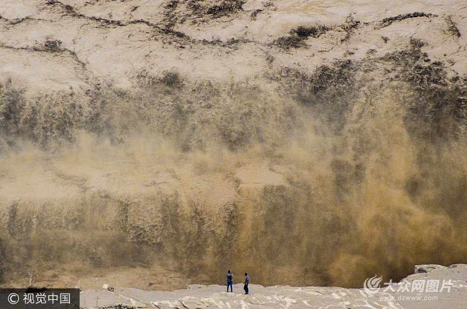 2017年7月27日下午,山西、陜西大峽谷之間的黃河壺口瀑布,奔騰咆哮、氣勢磅礴。當日,受黃河中游晉陜兩省中北部大范圍降雨及暴雨天氣影響,黃河壺口段迎來今年最大洪峰,為保障游客游覽安全,壺口瀑布景區采取暫時關閉措施。