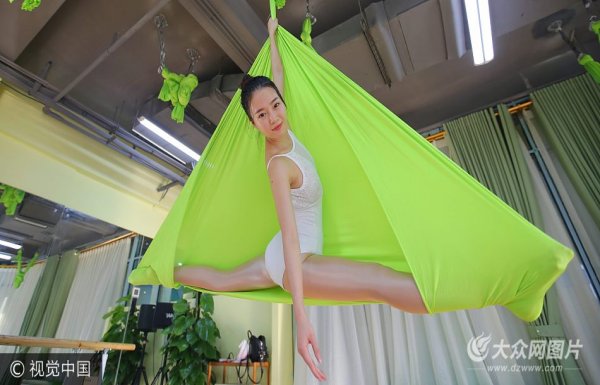女白領(lǐng)練空中瑜伽釋放壓力 秀出都市女性獨(dú)特魅力