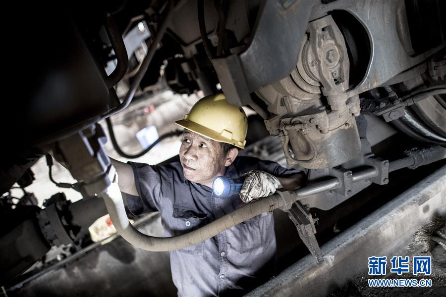7月30日,在武漢武昌客運機車整備場檢修庫房,51歲的電力機車鉗工吳衛兵在機車底部進行檢查維護。當日,武漢武昌客運機車整備場上熱浪滾滾,十多名機車檢修人員在蒸籠般的庫房內,對每臺機車的車頂、機械室和車底進行檢查作業。這是武漢鐵路局武昌南機務段武昌整備車間職工工作場景,他們主要負責武昌火車站到達的客運機車入庫后的全方位檢查和保養,確保每臺機車“健康”上線。入伏以來,武漢地區持續高溫,檢修庫房溫度普遍要比室外溫度高出近10℃,又值暑運,這個車間的整備任務非常重。修完一輛,送走一輛,又來一輛,他們剛把身上的汗水晾干,又繼續下一輛機車的整備作業。新華社記者肖藝九攝