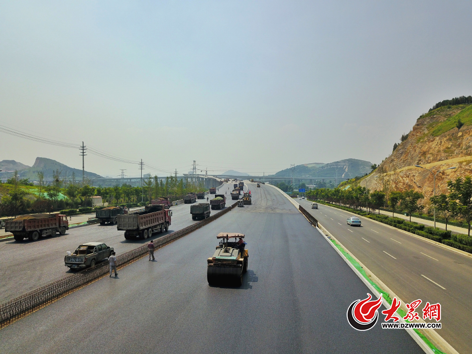 8月11日,在濟南二環(huán)西路高架南延二期工程鳳凰山立交橋施工現(xiàn)場,立交橋主體全部建設完成,目前進入橋面和配套設施安裝階段。記者在現(xiàn)場看到,幾輛壓路機正在來回作業(yè),滿載瀝青的車輛停靠在路邊。(大眾網-山東24小時客戶端記者 王長坤 攝)