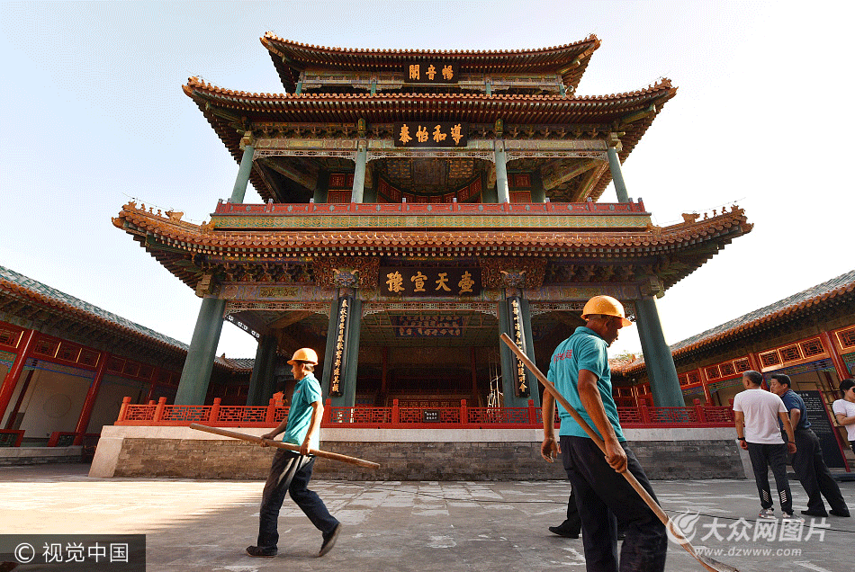 2017年9月11日,北京,故宮暢音閣、閱是樓修繕完工,即將變身戲曲館。暢音閣戲曲館,位于乾隆皇帝為自己養(yǎng)老修建的太上皇宮中,由暢音閣(戲樓)、扮戲樓(后臺)和閱是樓(觀眾席)組成一個完整的清代宮廷“大戲院”。此次戲曲館提升改造,著力強調(diào)宮廷戲曲的獨特性,彰顯暢音閣建筑的“大劇場”特色。通過新的參觀流線設計,將扮戲樓納入展覽,貫通三個空間,令觀眾一睹劇場全貌。(攝影:億柏)