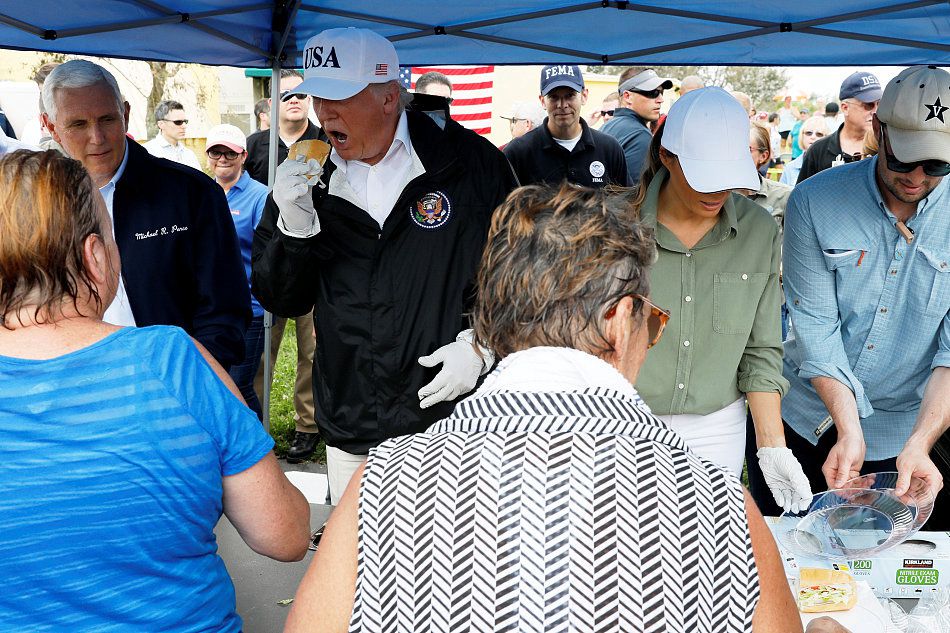 特朗普視察佛州颶風災情 品嘗賑災三明治