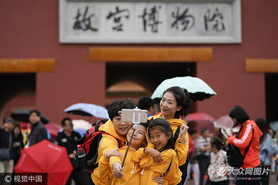 2017年10月2日,北京小雨,游客在故宮博物院游覽。根據國家旅游局數據中心綜合測算,中國國慶假期首日,全國當天共接待游客1.13億人次,同比增長10.5%,實現旅游收入965億元,同比增長12.2%。 杜洋(攝影部)/中新社/視覺中國
