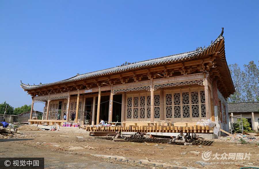 2017年10月8日,在安徽巢湖市柘皋鎮(zhèn)吳昌村,一棟古代宮殿造型的民宅正在建造中,外觀上已基本成型。宮殿分上下兩層,共10間房,總面積400多平米。據(jù)建造者家人和工匠介紹,建造費加后期裝修費,至少需要花費300萬元。