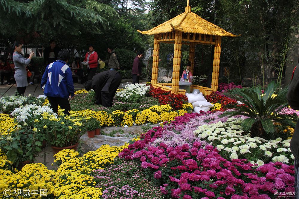2017年10月19日,在濟(jì)南趵突泉風(fēng)景區(qū)內(nèi),很多人都涌進(jìn)趵突泉看菊展造型,一座由玉米棒子建造的亭子,成為游客觀賞的一大亮點(diǎn)。據(jù)了解,2017年趵突泉菊展將于25日正式開幕,小馬、蝴蝶、小白羊、玉米做的房子等吸引眾多游客一睹風(fēng)采。