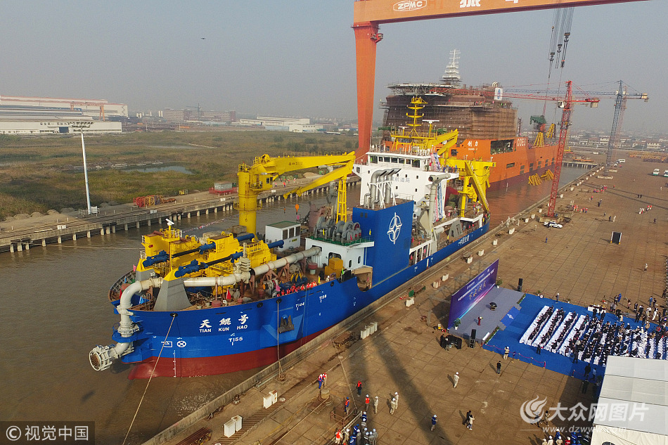 2017年11月3日上午,我國自主設計并建造的亞洲最大、最先進的絞吸挖泥船“天鯤號”在江蘇啟東成功下水。標志著中國疏浚裝備研發建造能力進一步升級,已處于世界先進水平。