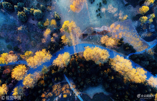 濟(jì)南:寒潮來襲降至冰點(diǎn) 滿園金黃如夢如幻