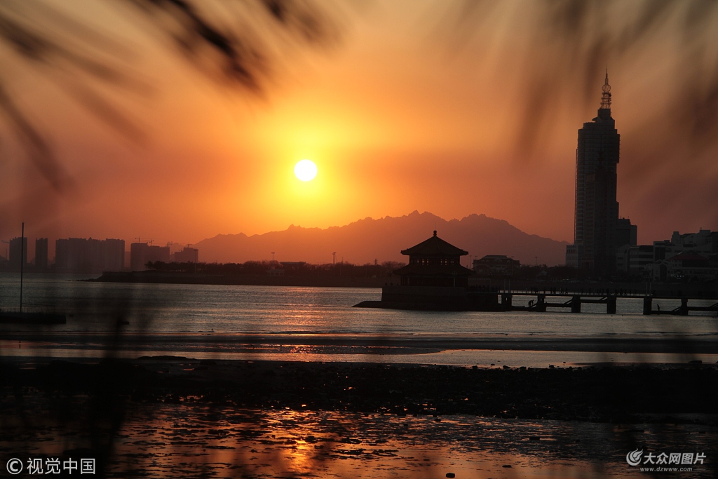冷空氣為青島吹來艷陽天 百年棧橋現日落美景