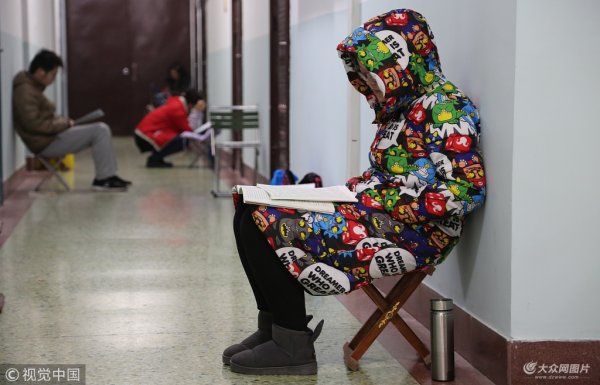 考研倒計時4天 濟南考生深夜樓道苦讀