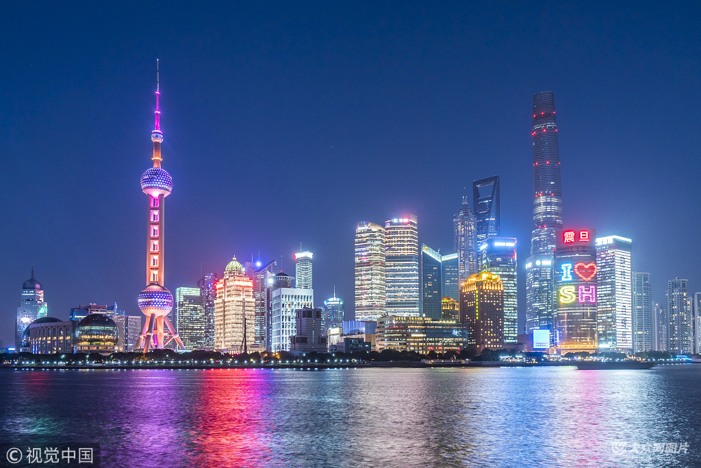 2017年12月19日,上海,當天傍晚5時許,陸家嘴華燈初上,東方明珠塔亮起五彩燈光,與北外灘白玉蘭廣場遙相呼應,璀璨夜色,景色迷人。