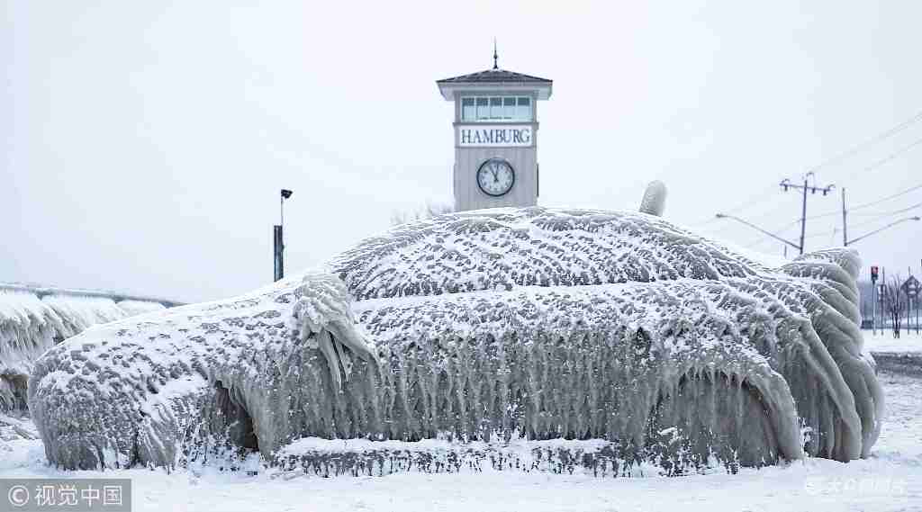 當地時間2016年1月12日,據ABC報道,1月11日美國紐約州西部城市布法羅(Buffalo)由于大量降水和較低溫度,一輛車輛上披上了一件厚厚的“冰衣”。圖中的這輛車晚間停在伊利湖(Lake Erie)旁邊,車主第二天來開時發現車輛根本動彈不了。由于前夜的暴雨,很多布法羅市民早上發現自家的車窗都凍住了。不過最不幸的當屬圖中的這位車主,因為她的車整個都凍住了。
