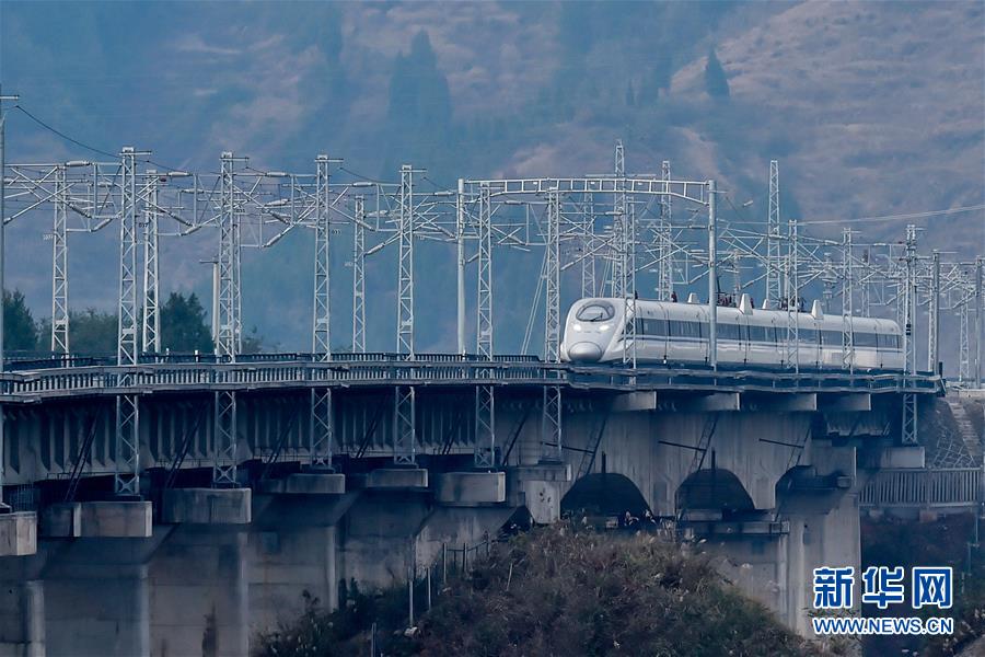 一列動車從渝貴鐵路上駛過(1月11日攝)。新華社記者 歐東衢 攝