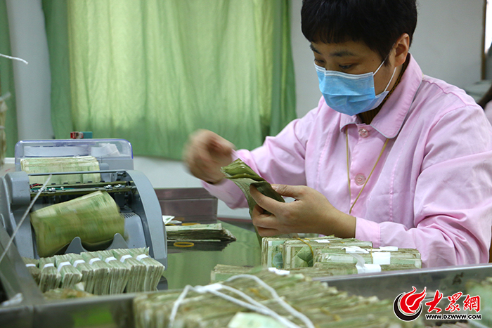 點鈔員清點完成后,100張扎為一把,質檢員再進行復點、驗鈔 。實習生 趙宇 攝