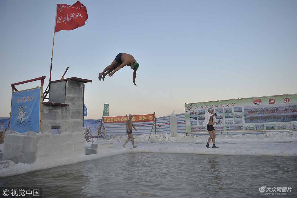 哈爾濱氣溫低至零下35度 勇者嚴寒中挑戰冬泳