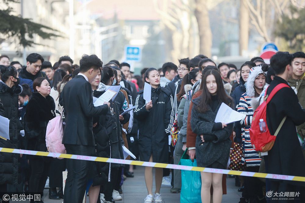 2018年2月23日,北京,中國傳媒大學藝考初試開考,現場美女帥哥云集。
