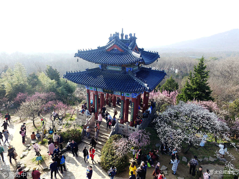 2018年3月10日,江蘇省南京市,眾多市民和游客利用周末晴好天氣前往梅花山踏春賞梅。梅花山是梅花盛開人潮涌,春光無限春朦朧。