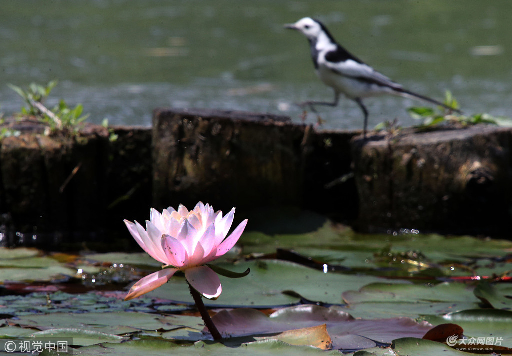 2018年5月4日,在杭州西湖龍泓澗景區(qū),大片睡蓮開(kāi)出粉嫩的花朵,在水面上搖曳身姿,就像盞盞蓮花燈在水中閃動(dòng)。