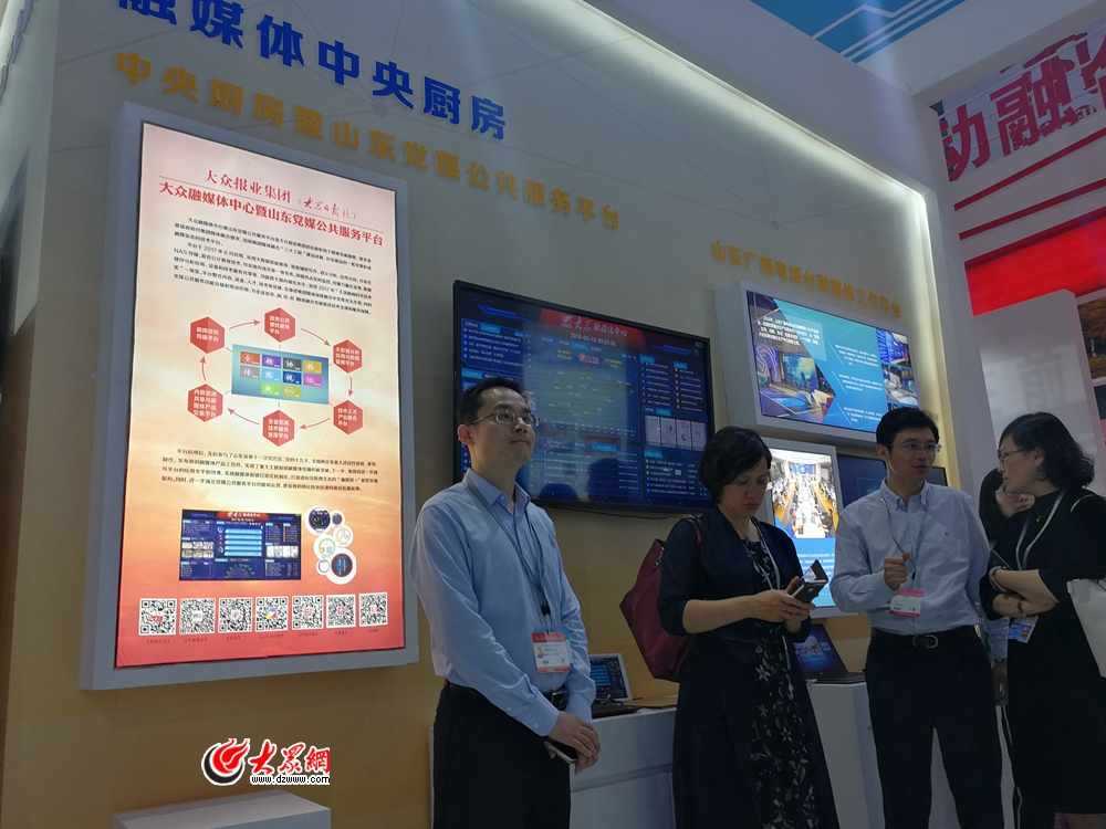 在山東館入口顯著位置,文化產(chǎn)業(yè)新業(yè)態(tài)版塊重點展示了以大眾報業(yè)集團(大眾日報社)中央廚房暨山東黨媒公共服務平臺為代表的媒體融合最新成果。