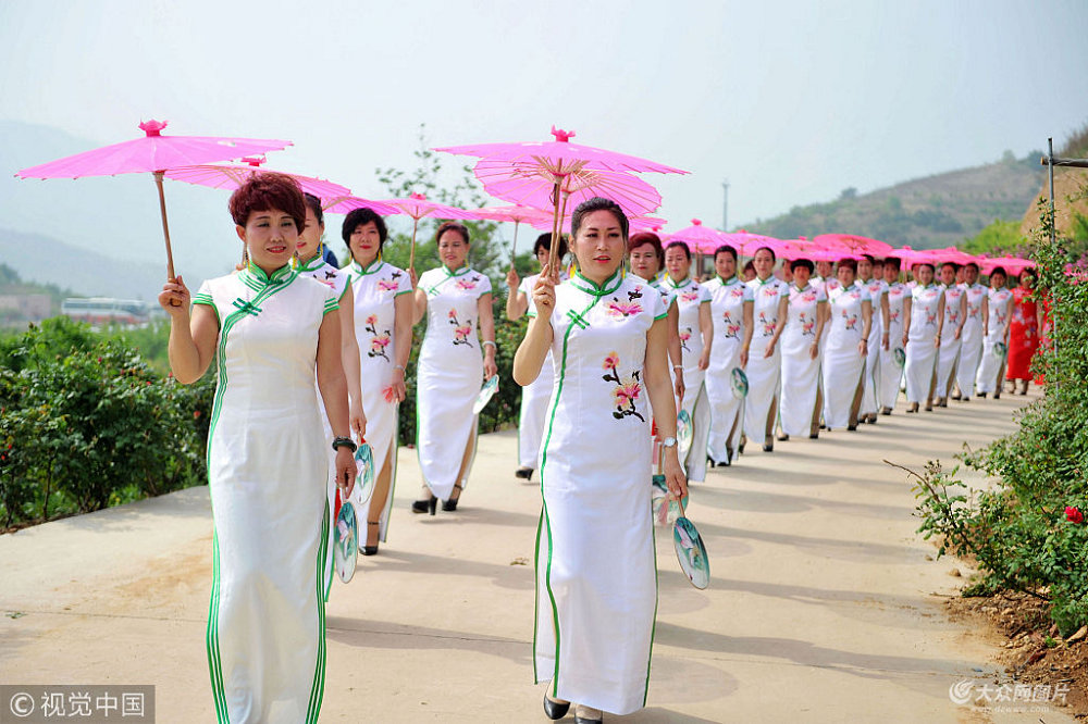 2018年5月13日,母親節(jié),山東青島西海岸新區(qū),一千余名來自山東及江蘇等地的母親,身著鮮艷的旗袍,行走在盛開鮮花的月季大道上,秀出母親的風(fēng)采和自信。