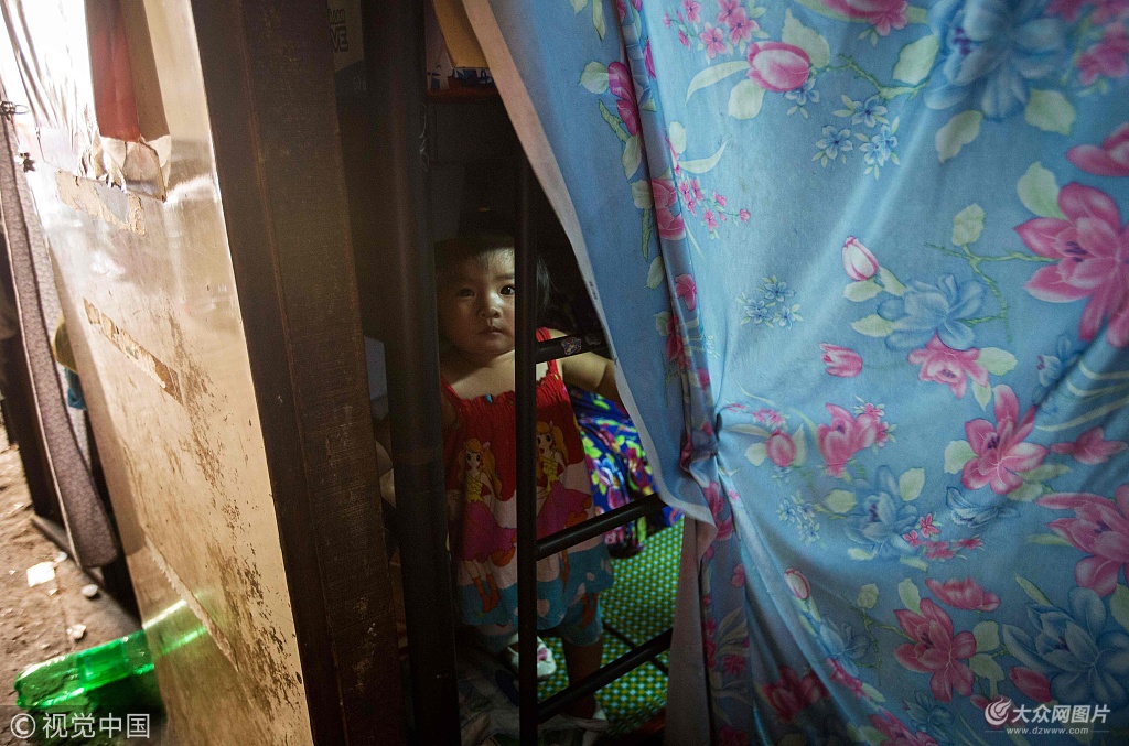 當?shù)貢r間2018年5月2日,越南胡志明市,女孩在叔叔兩平方米的家中往外看。