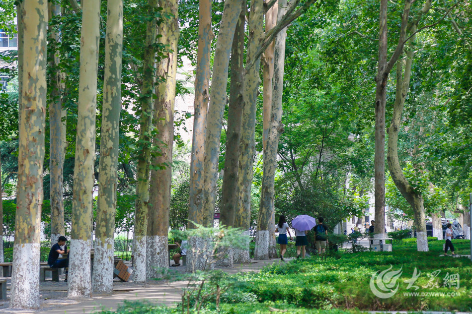 大眾網濟南7月13日訊 在炎熱的夏季,山大“小樹林”成為了人們避暑納涼的好去處。在山東大學中心校區弘德大道西側的文淵林,不少學生聚集在這里看書學習,討論問題,這里成為一處天然的自修地。(大眾網-山東24小時客戶端記者 畢勝)