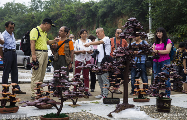 濟南:孔村靈芝做盆景 吸引市民圍觀