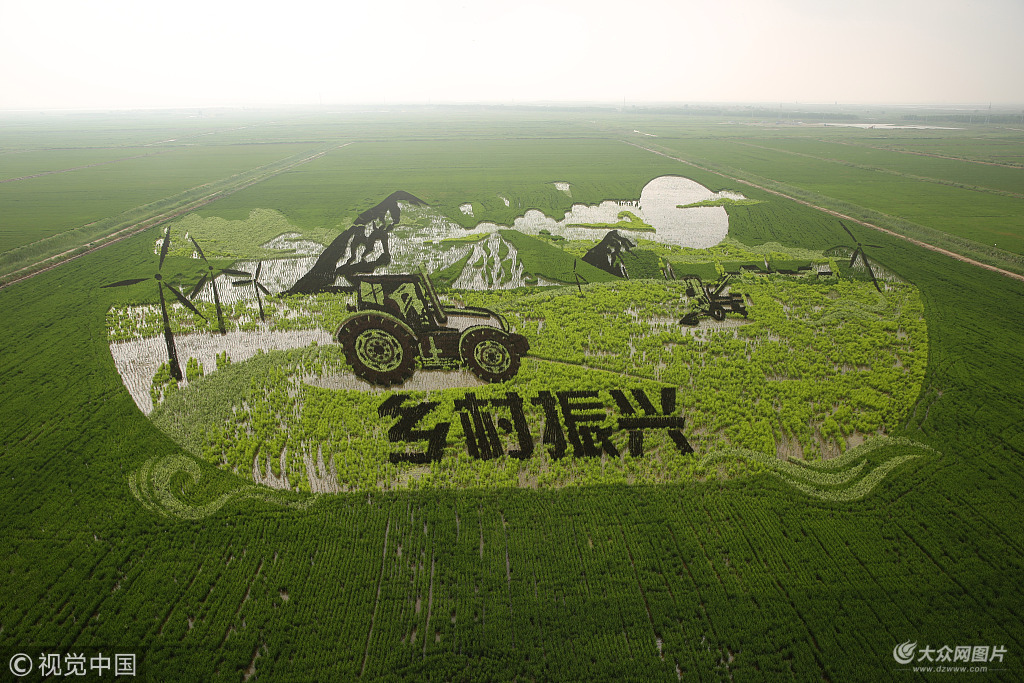 據了解,稻田畫是以稻田為紙、水稻為筆勾勒出的,今年作畫主題為黃河入海和鄉村振興,稻田作畫面積達到300畝,目前已進入最佳觀賞期。隨著水稻的不斷生長,這些圖畫還將變得更加立體、色彩也將更加豐富。