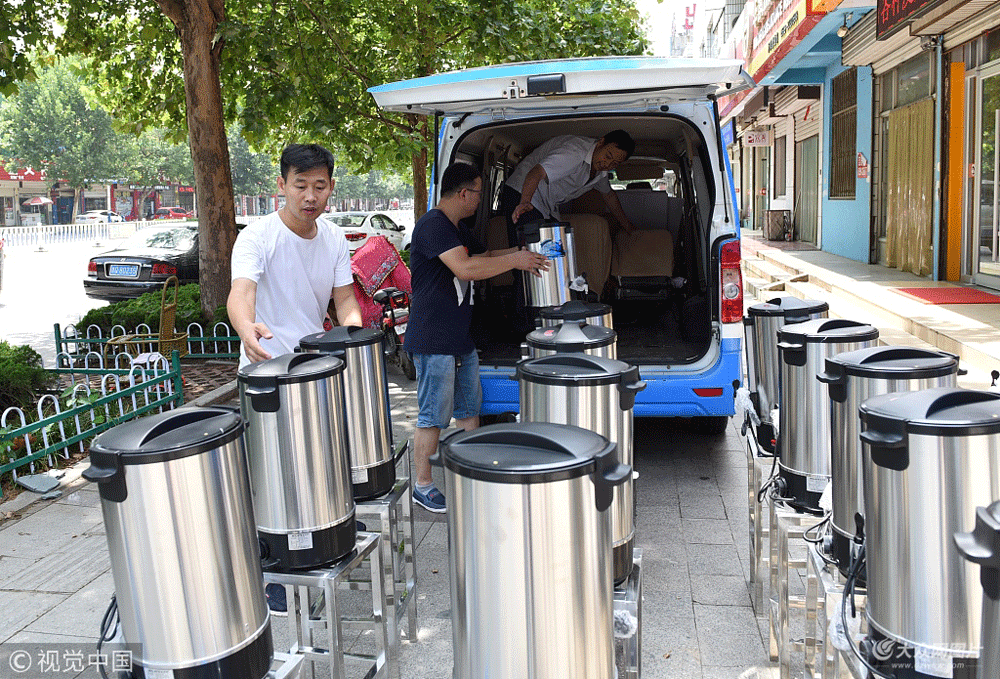 2018年7月30日,山東省臨沂市沂南縣退伍軍人、共產(chǎn)黨員曹貴然自費購買開水桶,在沂南縣城愛心店鋪的支持配合下,累計為環(huán)衛(wèi)工人設(shè)立了30處 “愛心供水點”,曹貴然和員工每天將礦泉水按時送到各個供水點,確保環(huán)衛(wèi)工人隨時免費喝到放心熱開水。沂南縣蘇村鎮(zhèn)曹貴然退伍后自主創(chuàng)業(yè)成功,創(chuàng)辦的旅游公司評定為3A級旅行社。他看到高溫季節(jié)環(huán)衛(wèi)工人飲水困難,就萌發(fā)了為環(huán)衛(wèi)工人設(shè)立 “愛心供水點”的想法。他的善舉受到當(dāng)?shù)厝罕姾铜h(huán)衛(wèi)工人的稱贊。