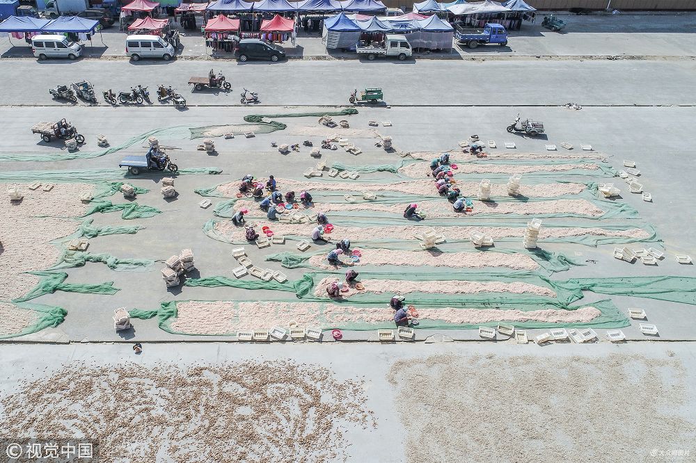 航拍濱州萬(wàn)斤蝦皮分揀現(xiàn)場(chǎng) 留守婦女成主力半天賺60元