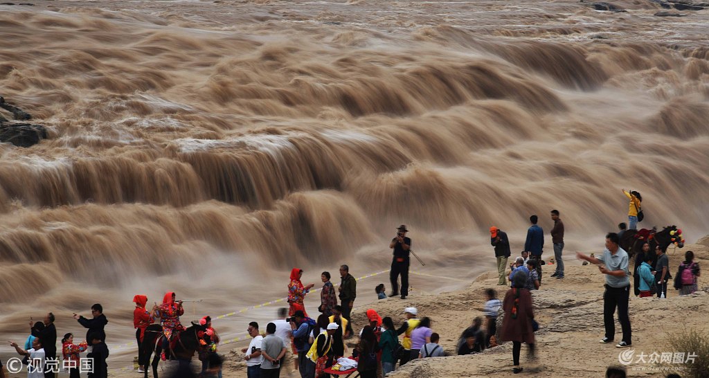 2018年9月13日,游客在陜西省宜川縣黃河壺口瀑布游覽觀瀑。