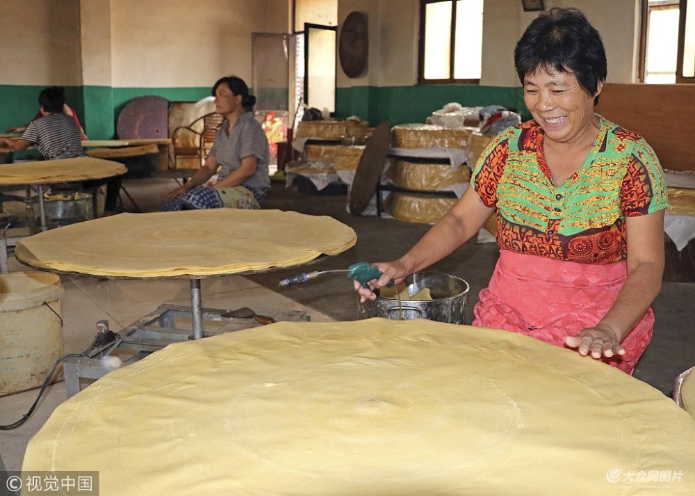 在山東省寧陽縣,有個歷史悠久的“煎餅村”——東莊鎮東山陰村,家家戶戶會攤煎餅,生產玉米、小米、高粱等各種口味。曾經攤煎餅送紅軍的故事還被村民們畫到了墻上。