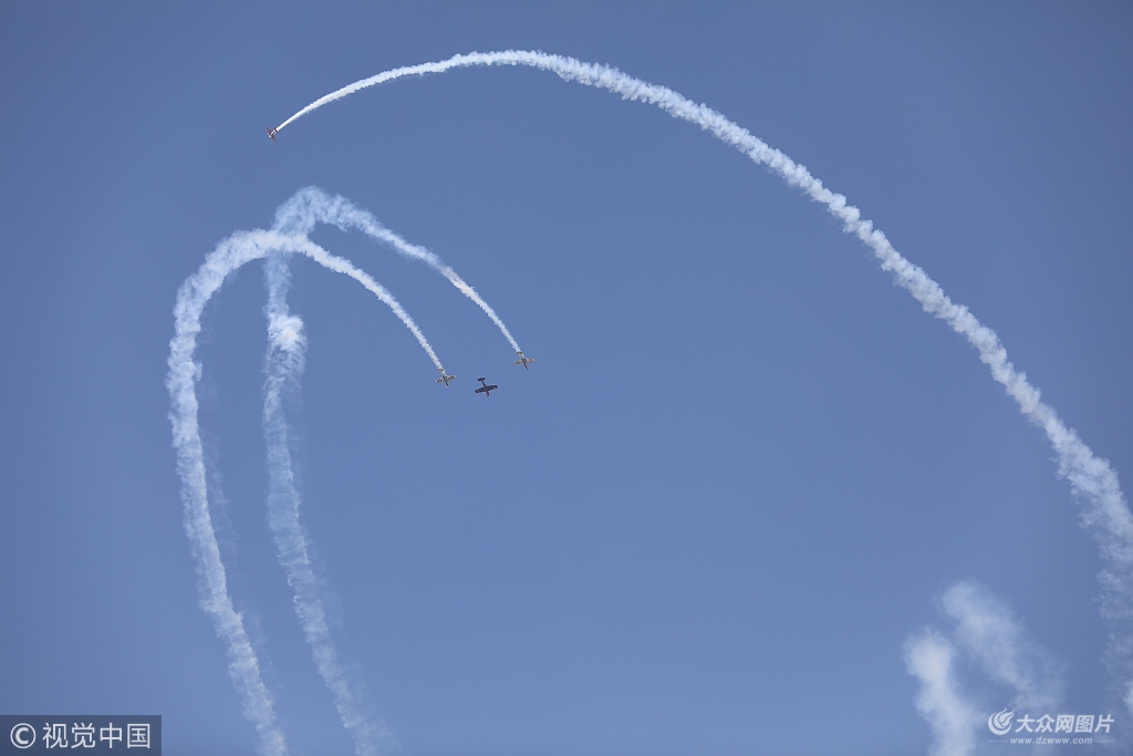 2018年9月21日,石家莊,2018中國國際通用航空博覽會上的飛行表演。為期4天的2018中國國際通用航空博覽會21日在欒城機場開幕,此次展會將舉辦航空器靜態展、特技飛行表演及飛行演示等系列活動。預計本屆航展觀眾人數將達50萬人次。