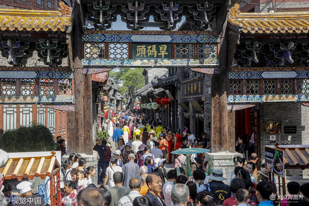 2018年9月22日,山東淄博周村大街店鋪林立,建筑風格迥異,游人如織。圖片作者:視覺中國