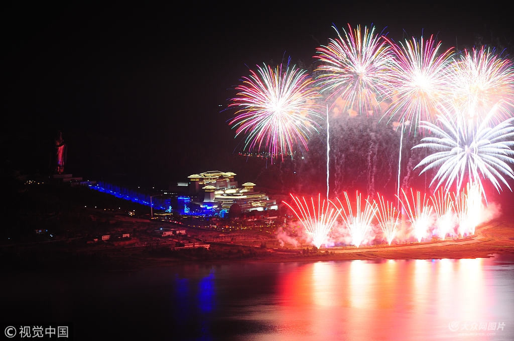 2018年9月24日晚,山東濟寧,中秋節煙火秀在曲阜上演。