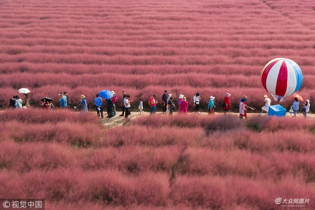 2018年10月3日,游客在南京市溧水區郭興莊園的“粉紅田野”中游玩。