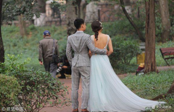 又到金秋婚紗季 青島八大關(guān)吸引眾多新人拍攝婚紗照