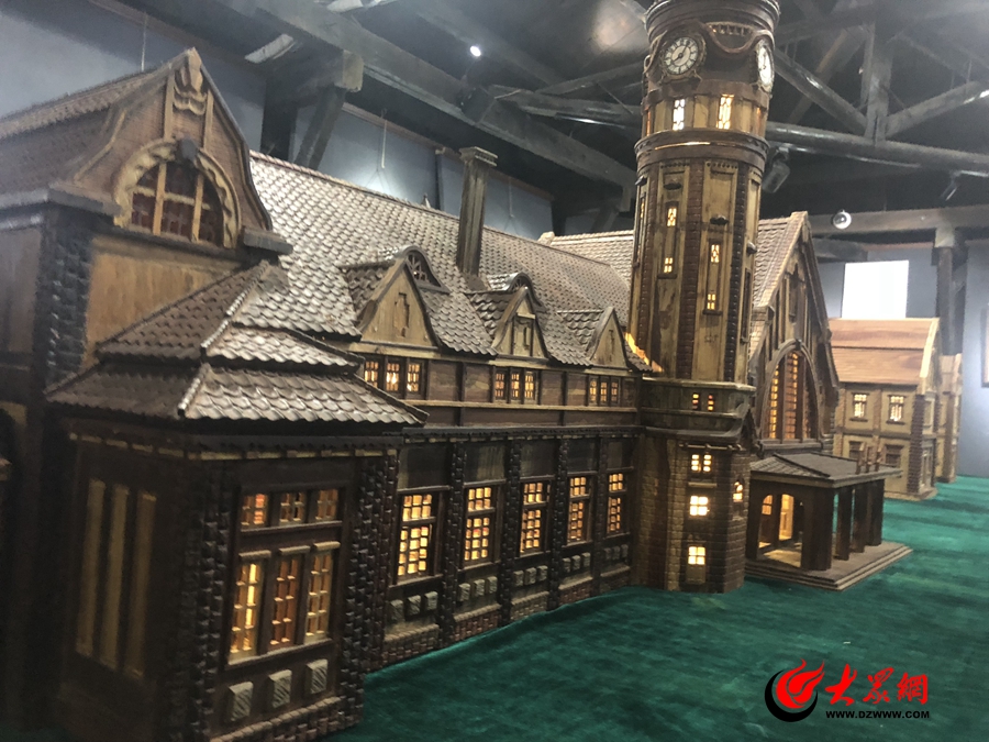 在意匠老商埠分會場,一座制作精美的木雕——“濟南老火車站”吸引了很多人駐足圍觀。“完全是按照1912年竣工的原圖,按照1:36原版制作的。”老火車站的創作人、濟南市傳統手藝人協會會長楊崇華告訴記者,這座2米多長的木雕模型耗費了楊崇化5年的精力和心血。用圖紙參照大量圖片,把老濟南火車站盡可能展現出來。瓦片、小窗戶、門窗都是活的,可以打開,就連售票處的門也是可以打開的。老火車站房頂上一萬多片瓦片,都是一刀刀雕琢出來的。楊崇華告訴大眾網記者,其實最費事的是保留歷史還原度。因為和真正的古建筑不一樣,縮小到一定程度后,很多小的地方很難表現出來,比如說窗子,做到開合自如,非常很難。他做的木質模型和真窗子一樣里面有轉軸,一間房子,上下二層樓,需要雕刻五個月。