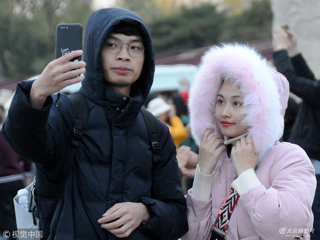 2018年11月15日,受冷空氣影響,北京遇大風天氣、氣溫驟降 ,天安門及長安街的游客包裹嚴密地在寒風中游覽,熱情不減。
