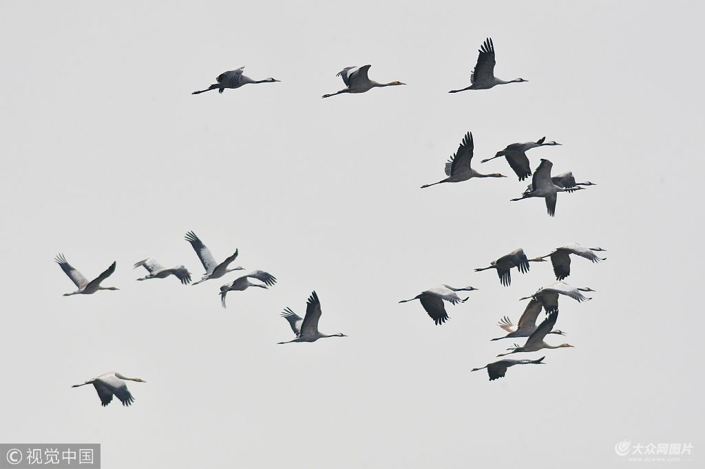青島:遷徙灰鶴增至23只 大天鵝白琵鷺又來“助興”
