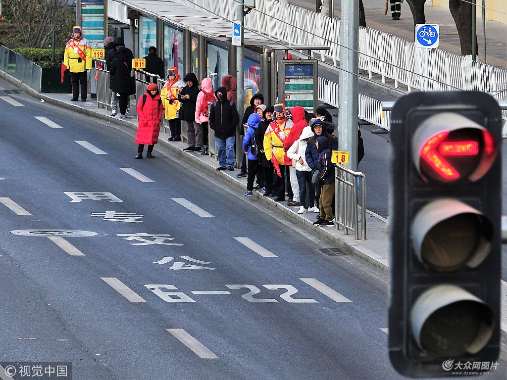 寒風中的堅守 北京公交引導員成為冬日風景線