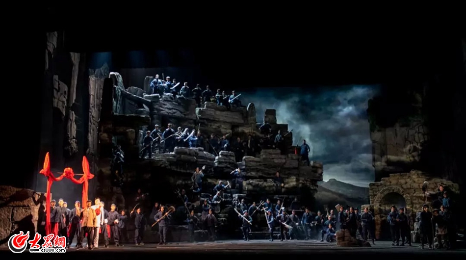 大眾網(wǎng)-海報(bào)新聞濟(jì)南12月20日訊(記者 李金珊 張珈瑋 亓翔) 歷時(shí)兩年精心打磨的原創(chuàng)大型民族歌劇《沂蒙山》于12月19日、20日在山東省會(huì)大劇院舉行首演。《沂蒙山》立足齊魯?shù)赜蛱厣瑒?chuàng)新吸納大量山東藝術(shù)元素并進(jìn)行藝術(shù)再造,呈現(xiàn)出濃濃的“山東味”。