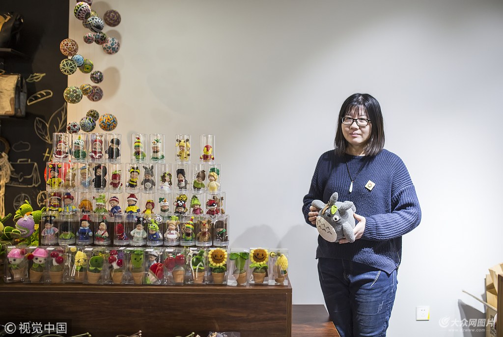 山東濱州,十余名80后、90后手工愛好者齊聚周末創意集市,展示她們制作的編織、植物染、鉤針玩具、手工皮包、手工明信片、私房雞湯、手工美食等數百種手工制品。