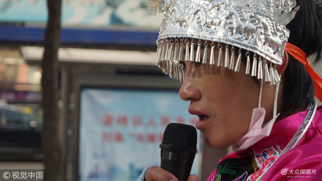 她叫衛依永,33歲,佤族。2006年嫁到山東鄒城市東寨村后和大自己10歲的丈夫生育了兩個孩子。大女兒已經讀初中了,小兒子今年8歲一家人過得也挺不錯的,2017年9年小兒子患上白血病,一家人借遍了親戚朋友貸款給兒子做了移植手術,本以為花了這么多錢一切應該好起來了吧,沒想到今年8月份出現排異,這次因拿不出錢來給兒子治病幾天被醫院辦理出院,她受網絡一些救子事例啟發走上街頭開始了唱歌賣藝救子。12月26日當日濟南氣溫降到零下十度,寒風中她顫抖唱歌近2小時獲得31元的善款,衛依永說為了孩子自己不會放棄籌款的決心。
