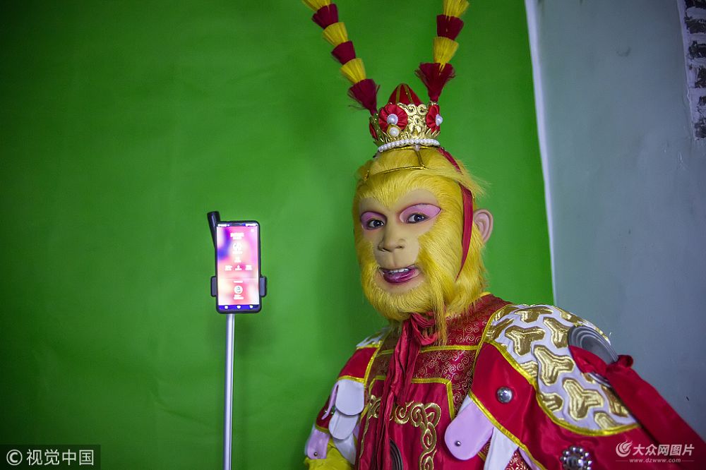 濱州市惠民縣魏集古村落景區,有一位專職“美猴王”演員華子正在進行新年的第一次網絡直播和景區表演。出生于1989年的“美猴王華子”,來自魯北農村,這個年輕帥氣而又靦腆的小伙子從小就喜歡《西游記》中孫悟空的扮相,一有空就看視頻學習美猴王的表演,立志做一名“草根美猴王”。2016年,華子不顧親戚朋友的反對,辭掉食品廠的工作只身來到景區,成為了一名專職的“美猴王”演員。