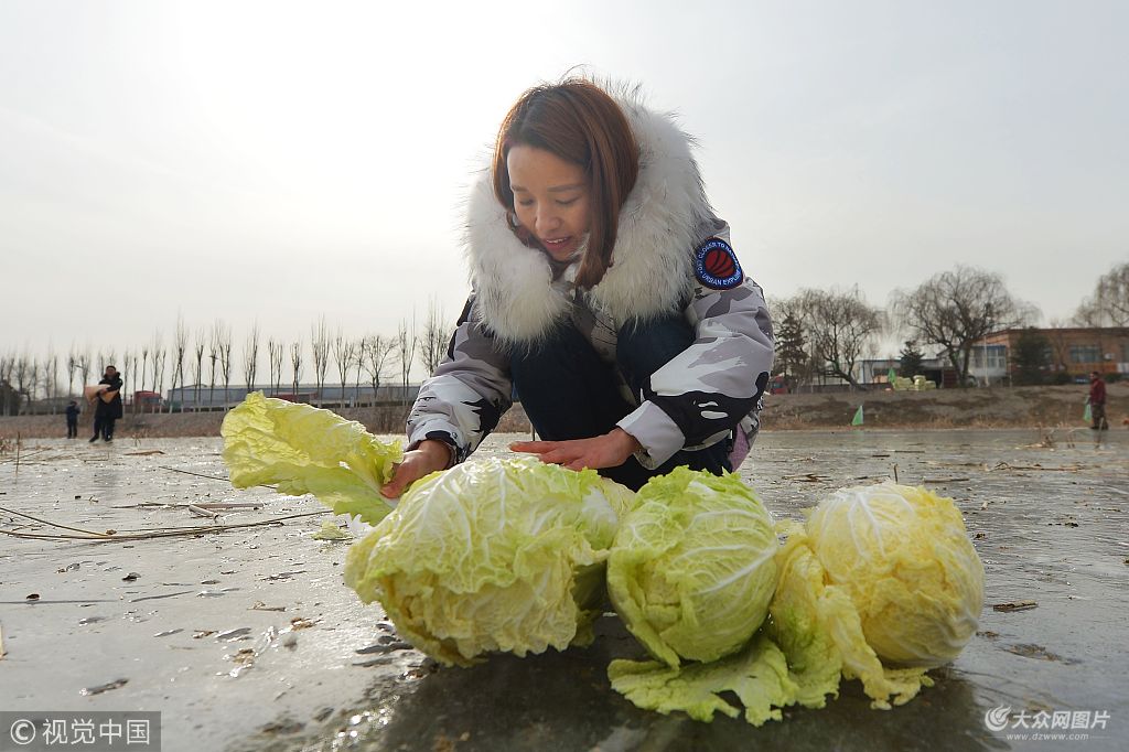 2019年1月9日,青島,城陽區野生動植物保護協會自愿者在冰封的河面上為候鳥投食。