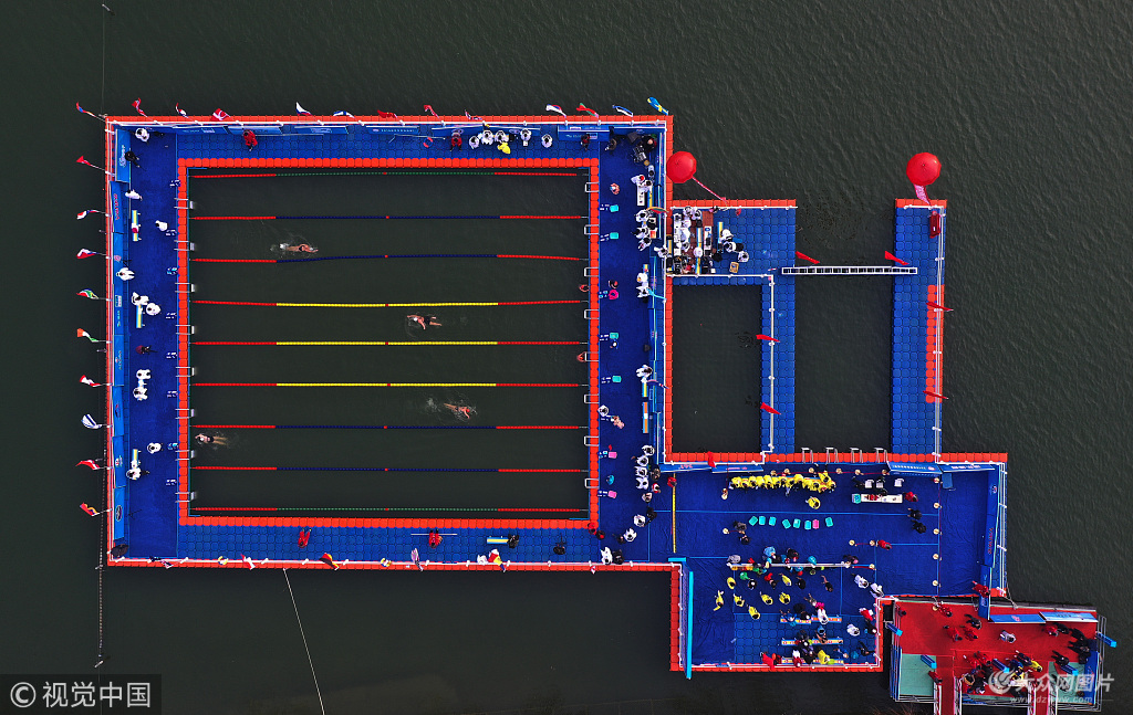 濟南:航拍冬泳比賽現場似五線譜