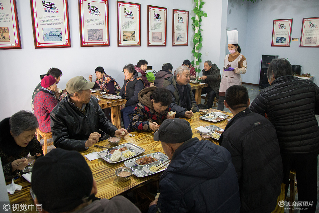 2019年1月18日,山東棗莊,在“一元敬老餐廳”就餐的居民年齡基本上都在60歲以上,兒女忙于工作中午一般不回家,有很多老人身體不便不能自己做飯,吃飯只能“應付”了事,老人們經常炒一頓菜吃三頓,或者就著剩菜吃饅頭也算一餐,饑一頓飽一頓,更談不上營養和健康。為此,該社區物業領導商討決定推出“敬老一元餐廳”。