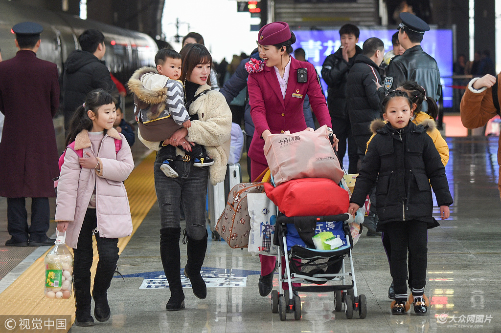 2019年1月19日,南昌,譚卓幫助重點旅客推拿行李,引導她們尋找自己票面的車廂和座位。
